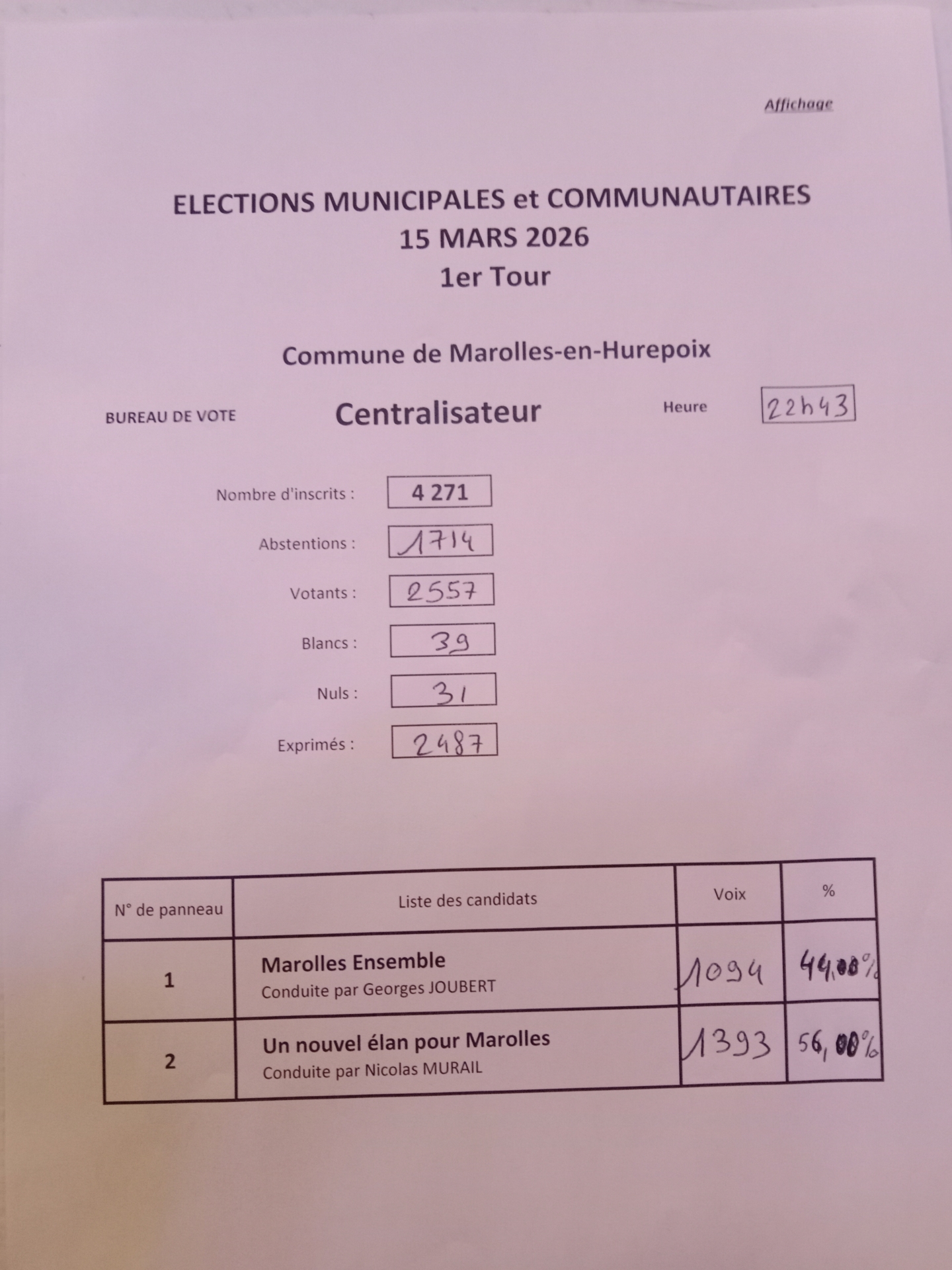 Résultats des élections municipales 2026