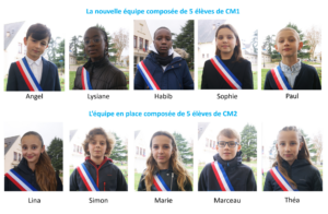 Angel, Lysiane, Habib, Sophie et Paul rejoignent Lina, Marie, Simon, Marceau et Théa pour former le Conseil Municipal des Enfants 2025.