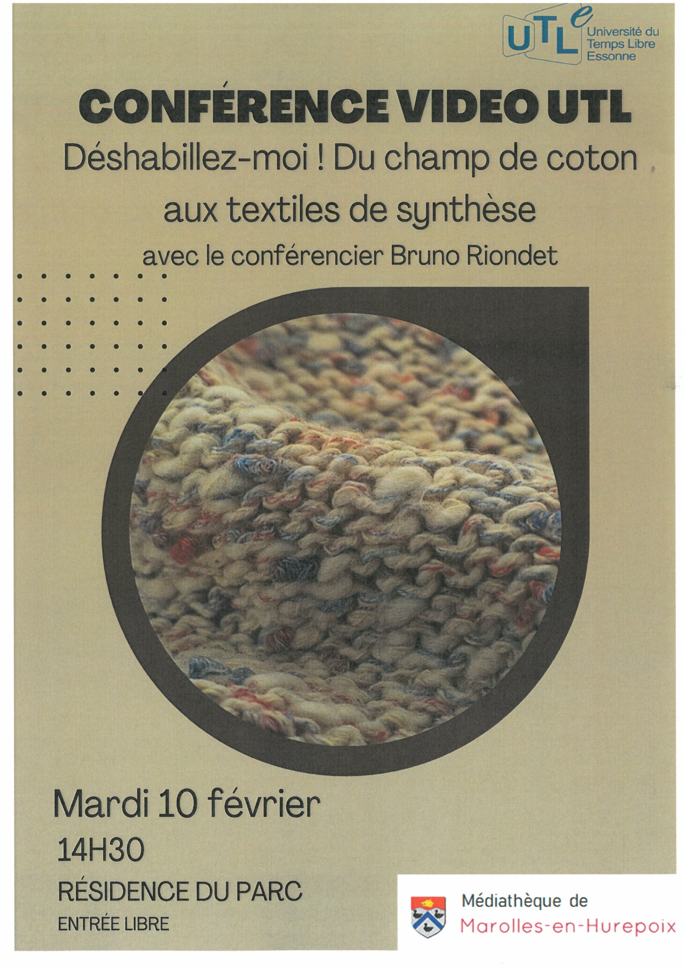 conférence UTL – « Déshabillez moi » Détails de l'évènement : Début : 10 février 2026 14 h 30 min Lieu : Résidence du Parc Catégories : Culture