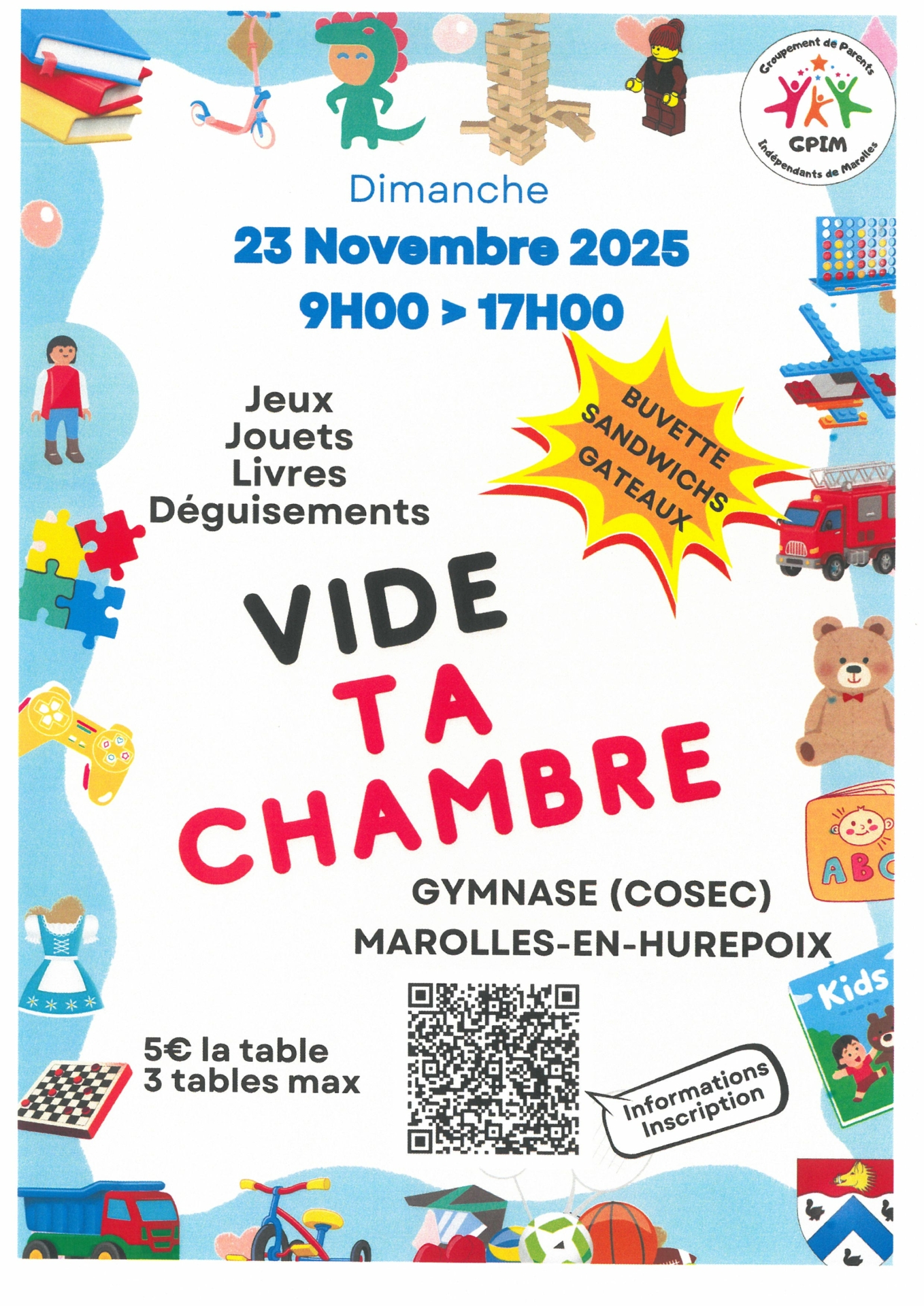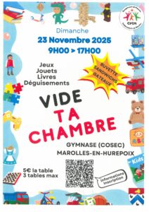 Vide ta chambre 2025 Détails de l'évènement : Début : 23 novembre 2025 9 h 00 min Lieu : Cosec Catégories : Associations